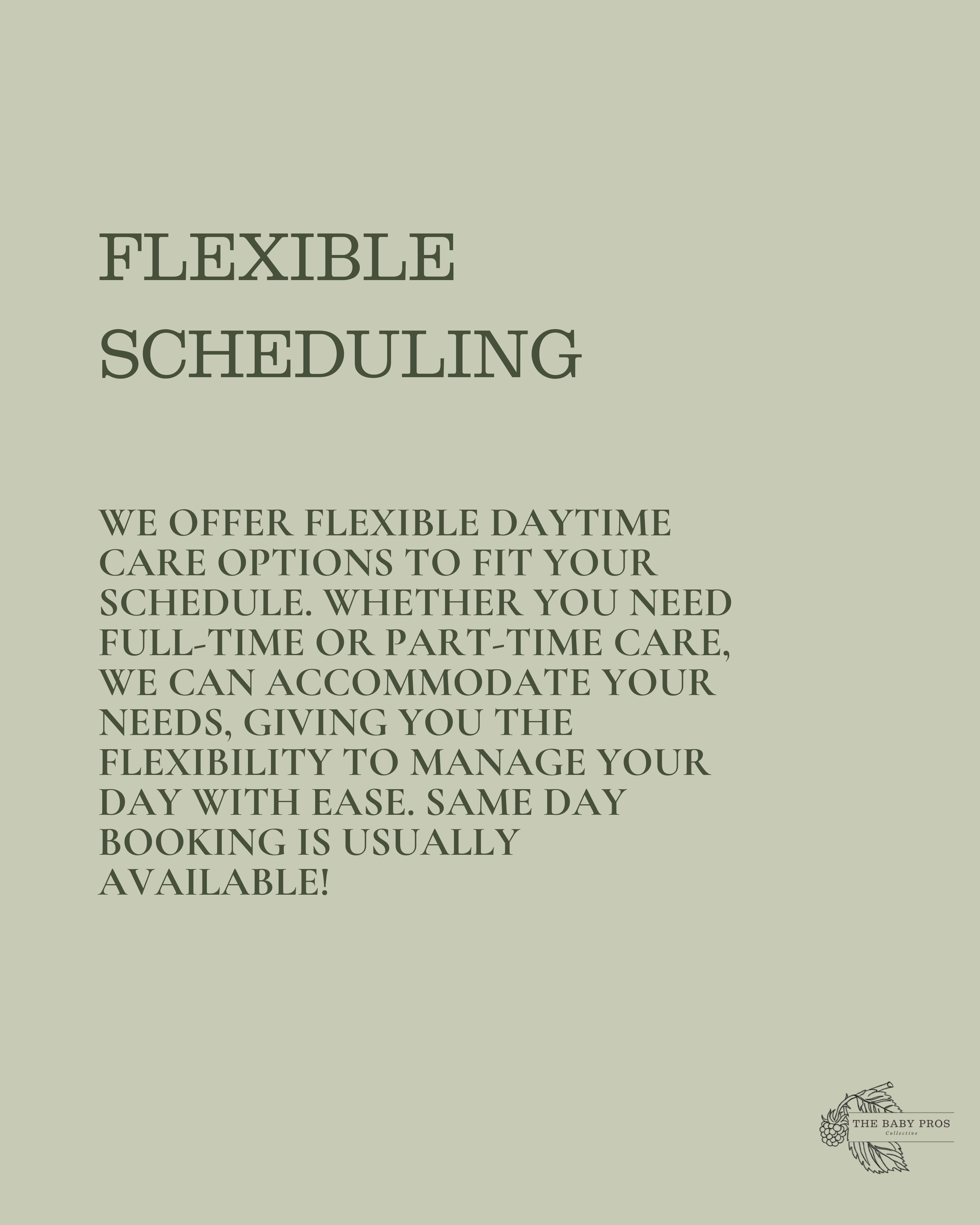 We strive to make your parenting journey smoother by offering dependable and affordable expert Daytime Infant Care. We promise to show up ready to provide the most exceptional expert level care so you are able to fully relax.